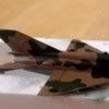Into the paintshop now. After pre-shading the panel lines the basic camouflage and underside colours were sprayed on. I used Model Master Dark Tan (1742), Dark Green (1710) and Russian Underside (2123) + White. I experimented with a liquid mask but I wasn't happy with the results. I ended up smoothing out the edges with a brush.